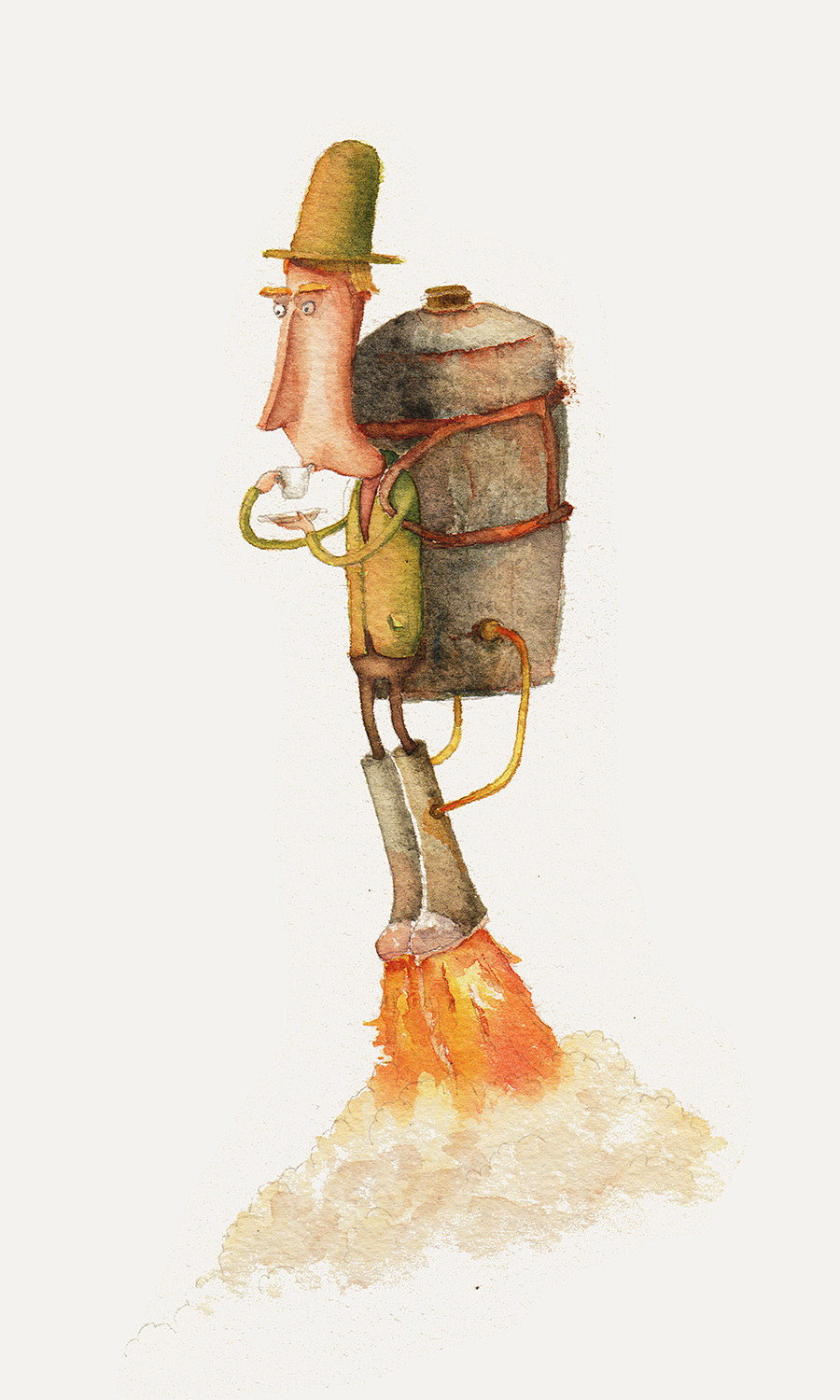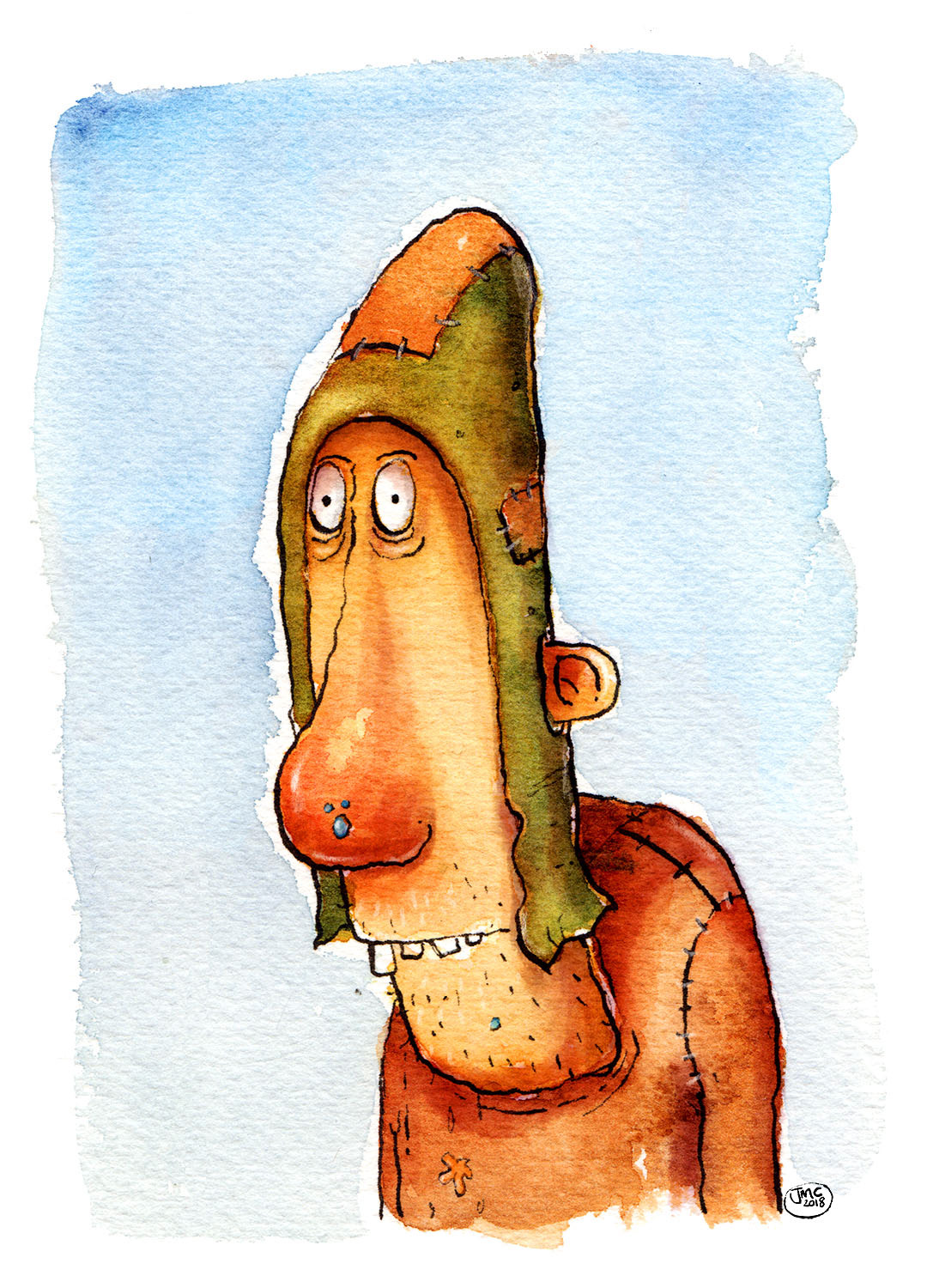 Selection of character studies in watercolour and coloured pencils.